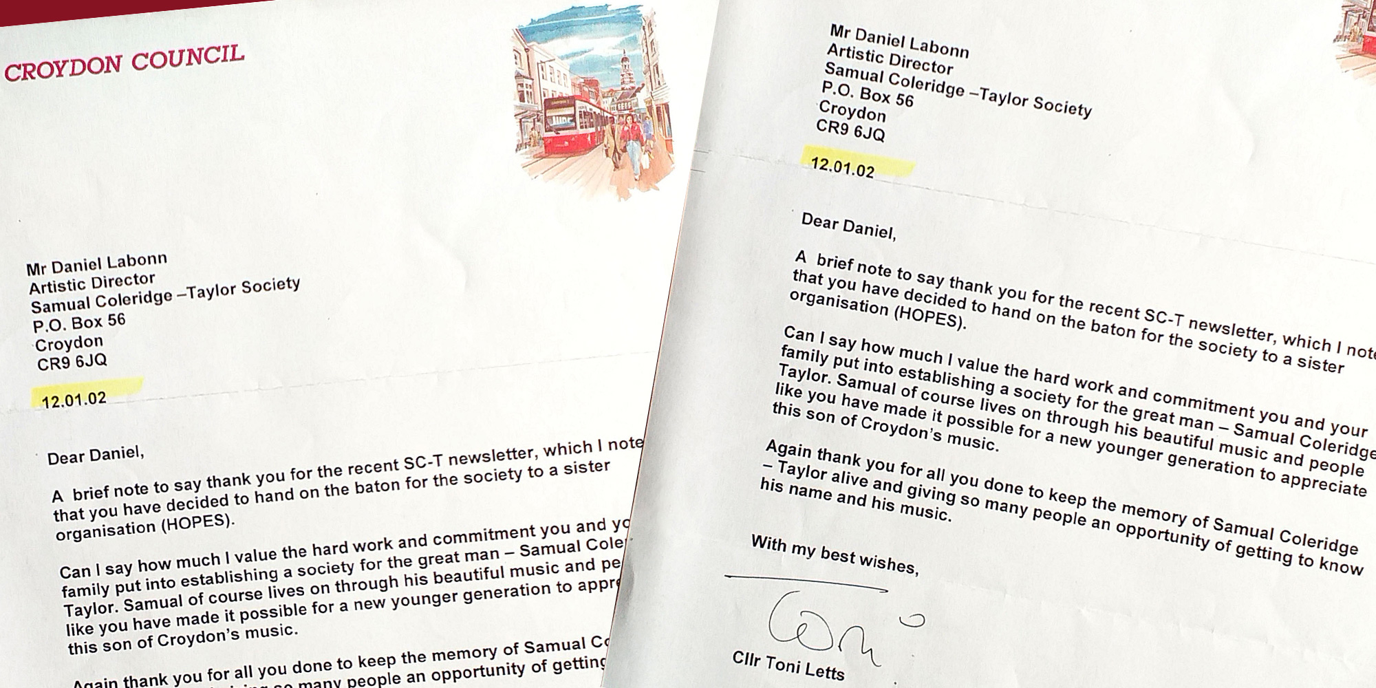 Croydon salue formellement le travail volontaire de la SCT Society mettant en valeur le compositeur, la ville de Croydon et la musique Britannique.
